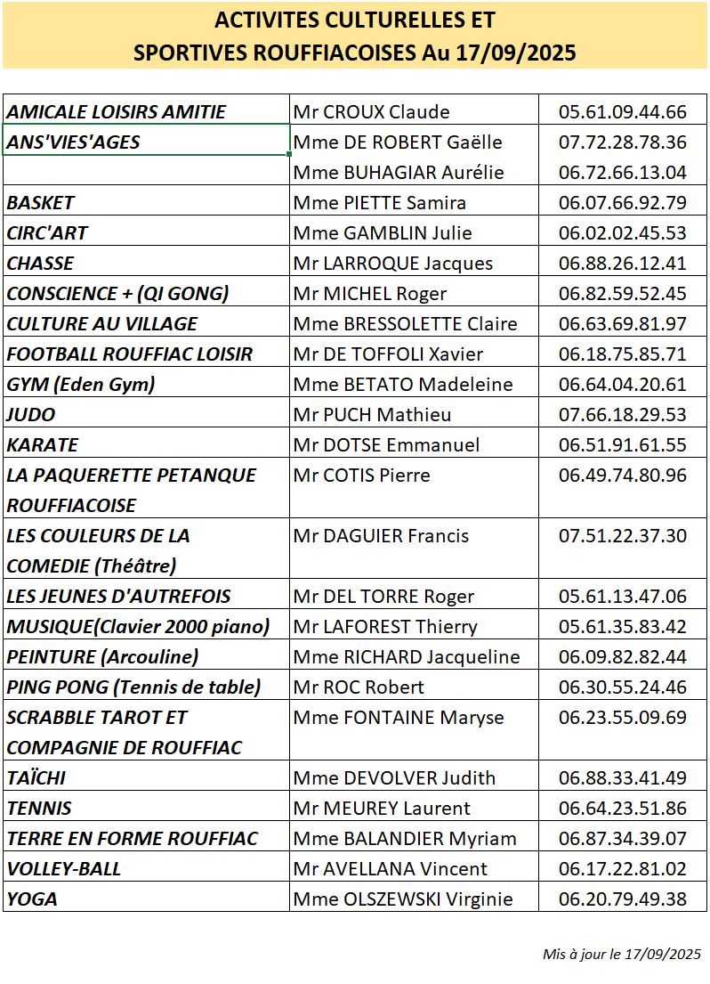 Les rouffiacois peuvent adhérer aux 23 associations actives actuellement.